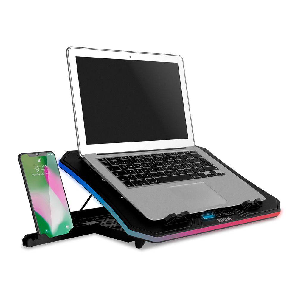 Krom Kooler é uma base de arrefecimento RGB avançada para portáteis, que o ajudará a conseguir a ventilação perfeita para manter sempre o seu equipamento na temperatura mais adequada, graças às suas seis silenciosas ventoinhas. Krom Kooler é o suporte perfeito.