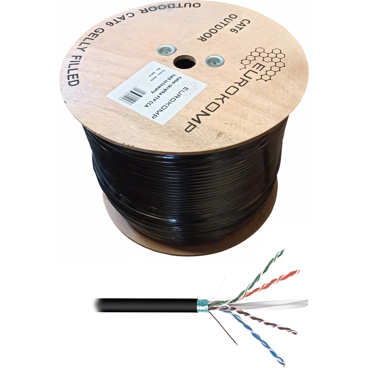 Cabo de rede CAT6 F/UTP com condutores rígidos 4×2, blindado e gelificado, indicado para instalações exteriores e interiores horizontais e verticais em redes de telecomunicações.