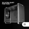 As três ventoinhas FDB ultra-silenciosas pré-instaladas estabelecem um novo padrão de desempenho silencioso, eliminando quaisquer distracções sonoras no seu espaço de trabalho ou área de relaxamento. Desfrute de paz de espírito, sabendo que o seu sistema está a ser arrefecido de forma óptima e silenciosa.
