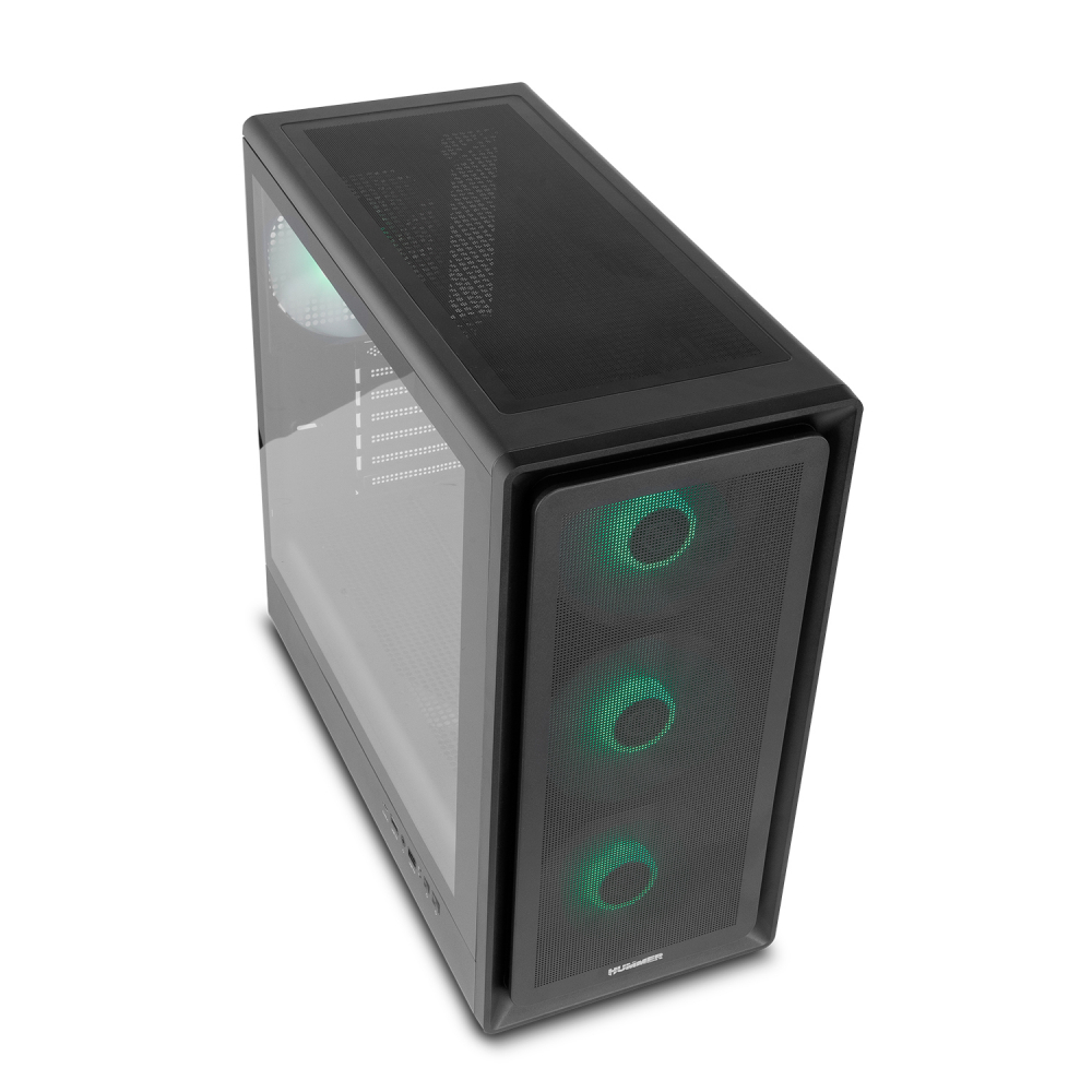 Caixa Mid Tower ATX de alto desempenho com foco em fluxo de ar máximo, equipada com quatro ventoinhas ARGB PWM de 140 mm incluídas. A Hummer AERO combina um frontal em metal mesh, painel lateral em vidro temperado e amplo espaço interno para componentes de grandes dimensões, sendo ideal para sistemas modernos e exigentes.