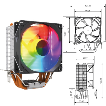 | Cooler CPU NTECH ICEROCK-V4 com 4 Heatpipes full-black para processadores Intel socket 115X/1366/1700/18XX e AMD AM5/AM4. Fan ARGB de 90mm com 4 pinos PWM e 3 pinos ARGB 5V.Compatível com Aura Sync, Mystic Light, RGB Fusion e controladores ARGB. Fan com 2500±10%RPM, a 55CFM e 20 db. TDP de 150W.Dimensões: 128 x 67 x 92 mm. |
