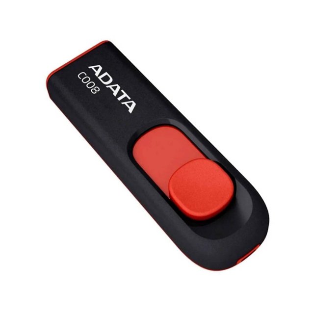 Flash Memory 32GB USB2 ADATA C008 Preto/Vermelho. Ultra-Slim e Ultra-Leve apresentando um design compacto.