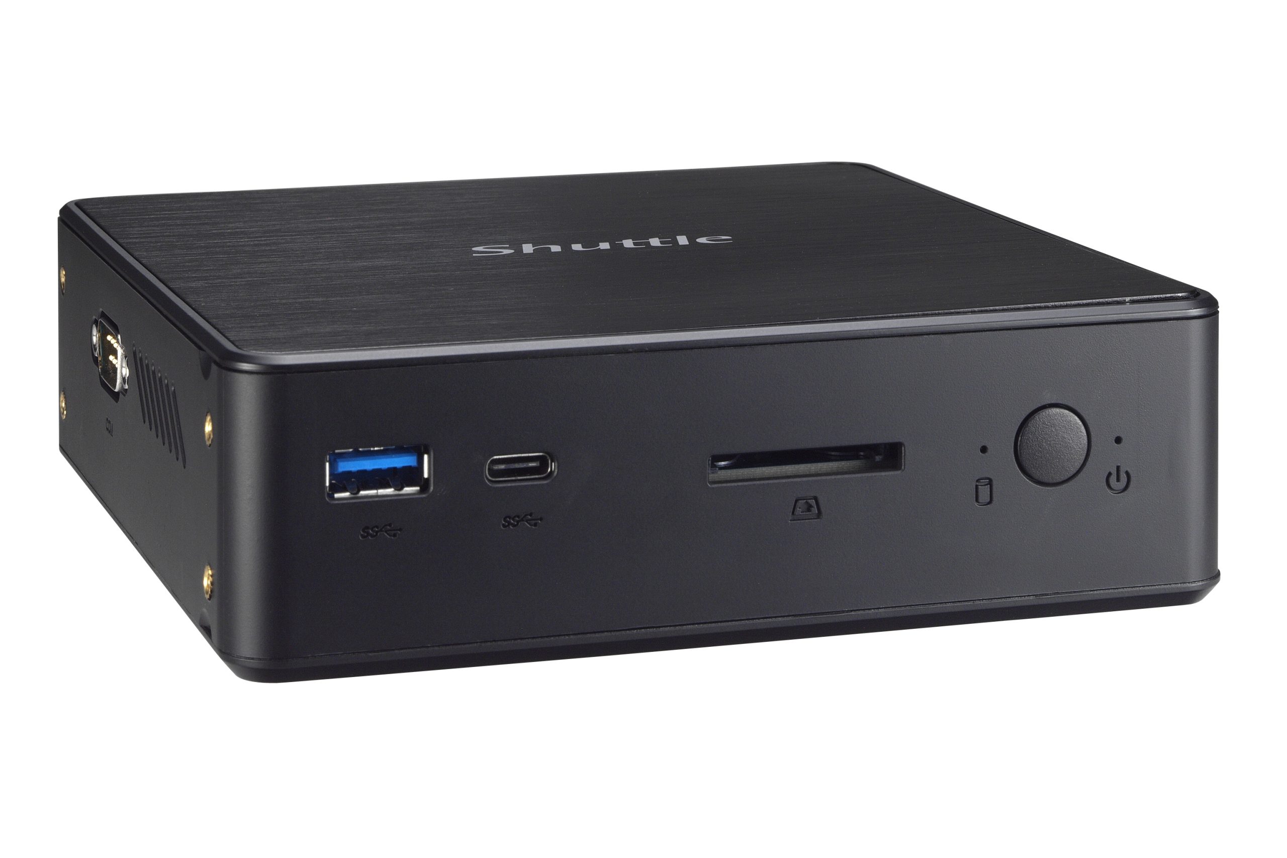 | NUC SHUTTLE com processador Intel Core i5-8265U 1.6 a 3.9GHz, 2 bancos de memória SO-DIMM DDR4 2133/2400 MHz, suporta 1 SSD M.2 PCIE X4 2280 e 1 SSD/HDD 2.5P, placa de rede Gigabit LAN Intel i211, WiFi AC.Painel Frontal com 2 USB 3.2 Gen1, 1 Tipo A e 1 Tipo C. Posterior com 2 USB 2.0, 1 RS232, saída HDMI e DP. Dimensão de 142(L) x 142(W) x 42(H) mm. Inclui Suporte Vesa. |
