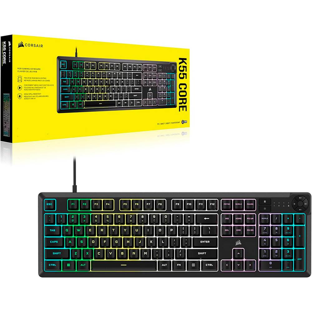 Teclado Corsair K55 Core RGB Gaming Rubber Dome PT